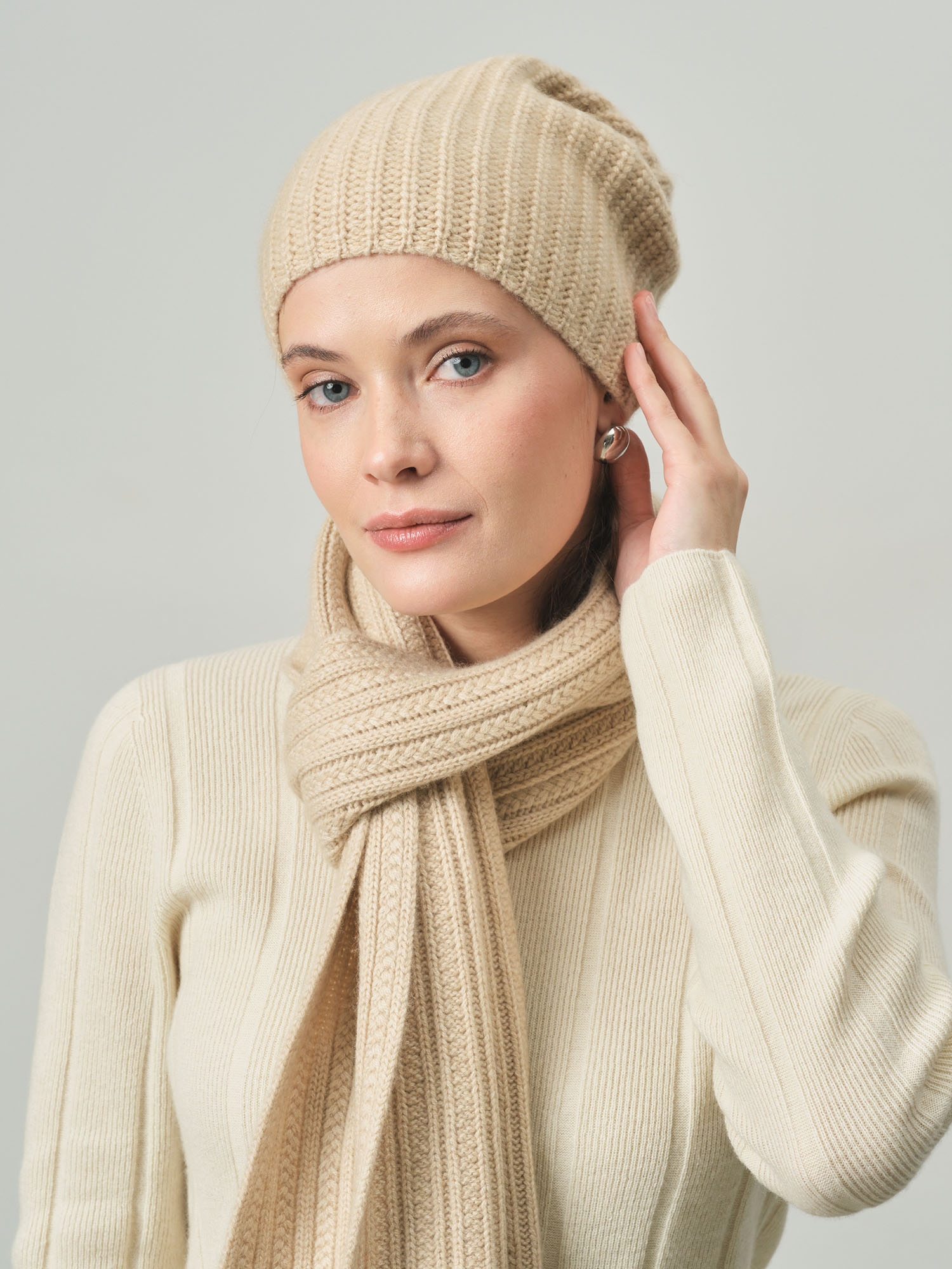 Шапка из кашемира KU101353-F бежевая