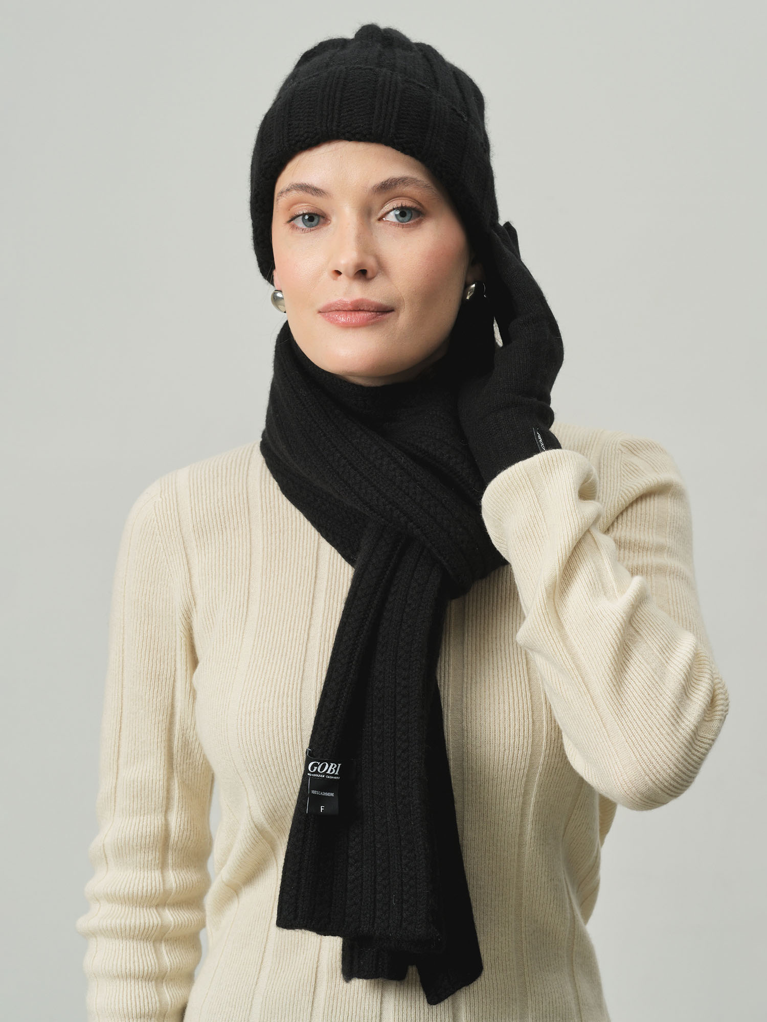 Долго искала качественную шапку из 100% кашемира, и наконец нашла! Материал невероятно мягкий и приятный к коже. Черный цвет универсальный, подходит к любой верхней одежде. Шапка отлично держит тепло, при этом голова не потеет.