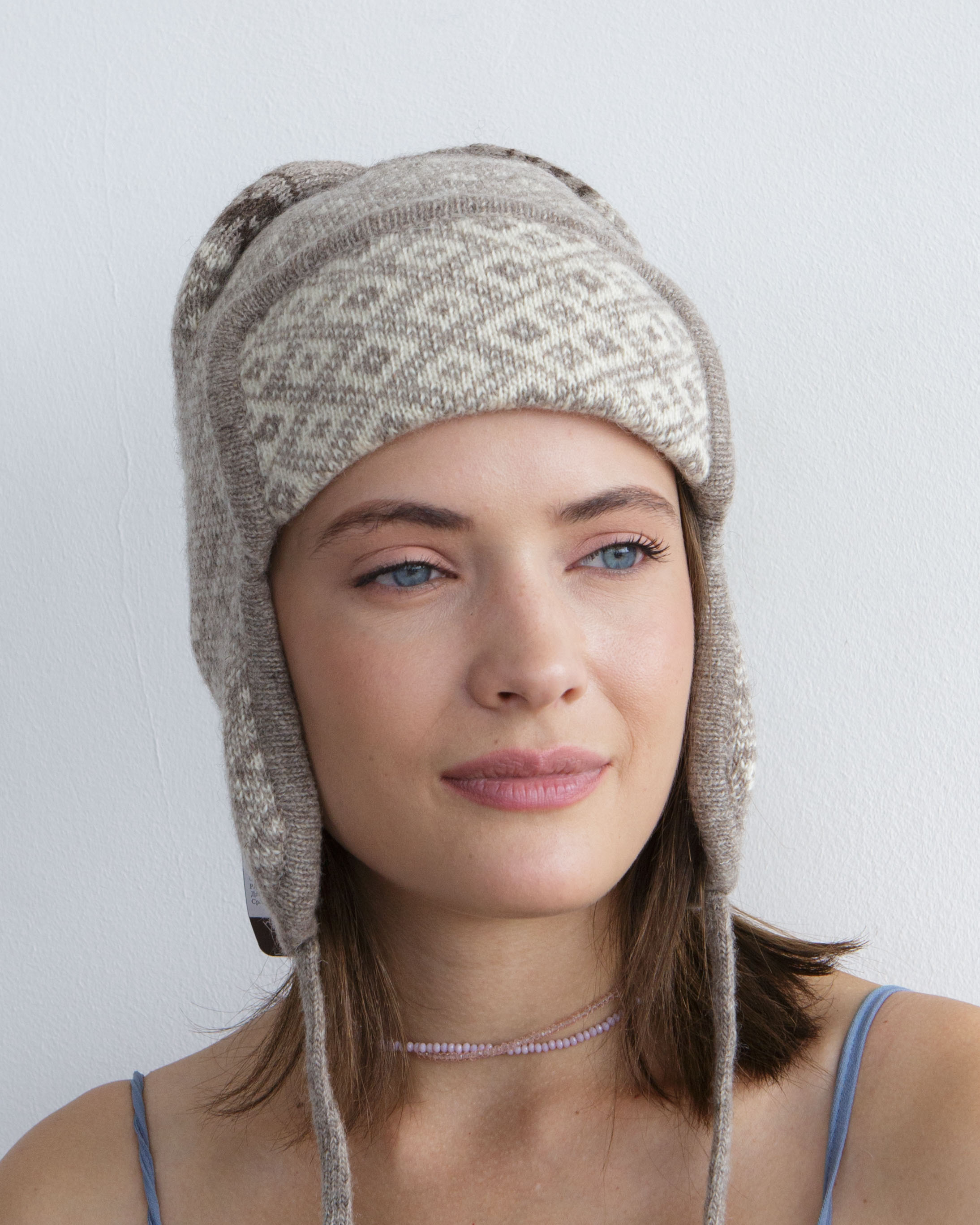 Тёплая и стильная ушанка из натуральной шерсти яка с декоративным жаккардовым рисунком. Модель сочетает в себе традиционный силуэт и современный минимализм, обеспечивая комфорт и надёжную защиту от холода. Мягкая текстура приятно прилегает к коже и подходит для повседневной носки в зимний период.