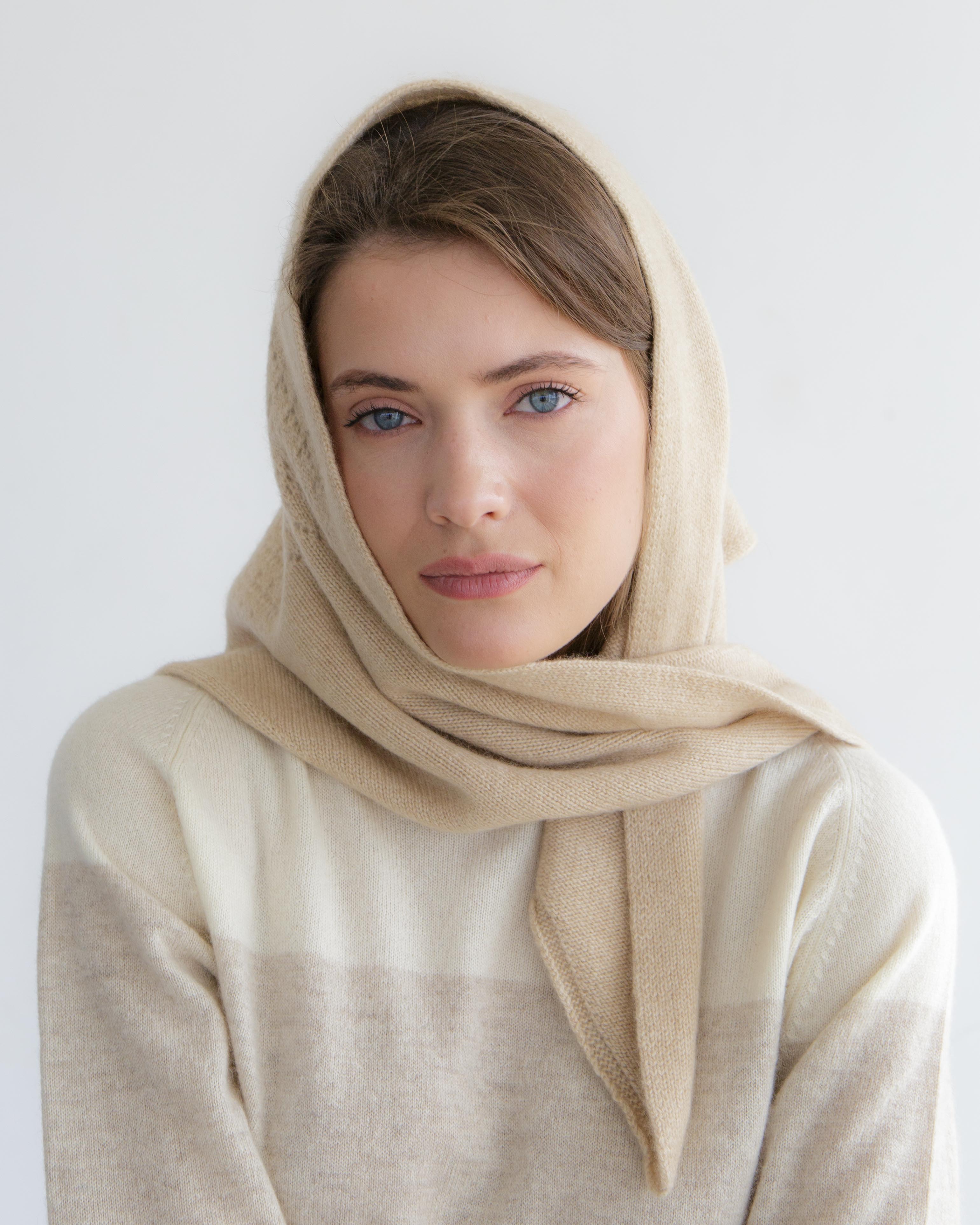Косынка легко драпируется и может носиться как на голове, так и на шее или плечах. Лаконичный дизайн подчёркивает натуральную текстуру кашемира и универсальность модели.