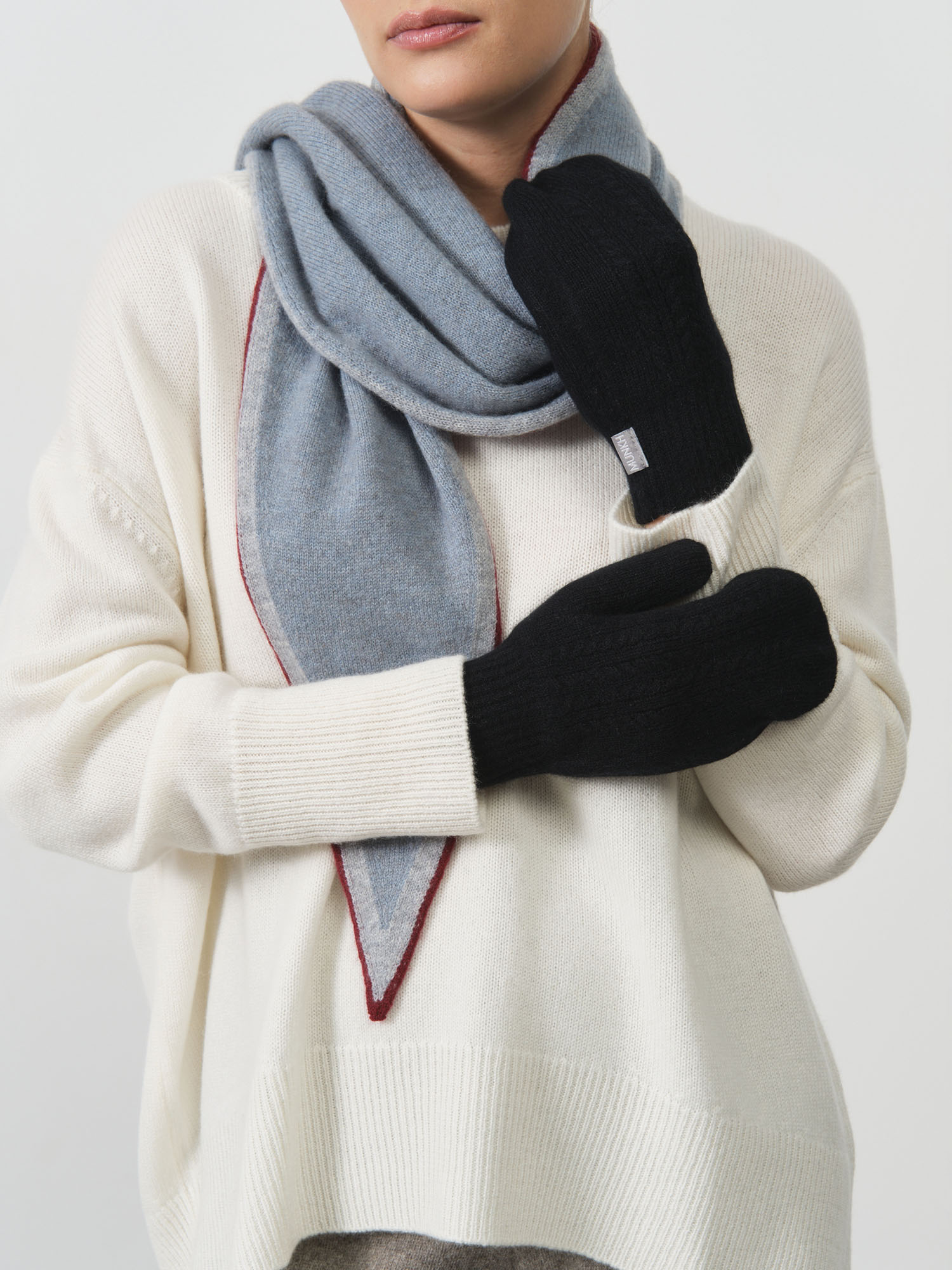 Варежки выполнены из натурального кашемира — премиального материала с исключительной мягкостью и высокой теплоизоляцией. Тонкое волокно эффективно сохраняет тепло, оставаясь лёгким и «дышащим». Кашемир гипоаллергенен и обеспечивает комфорт даже при длительной носке