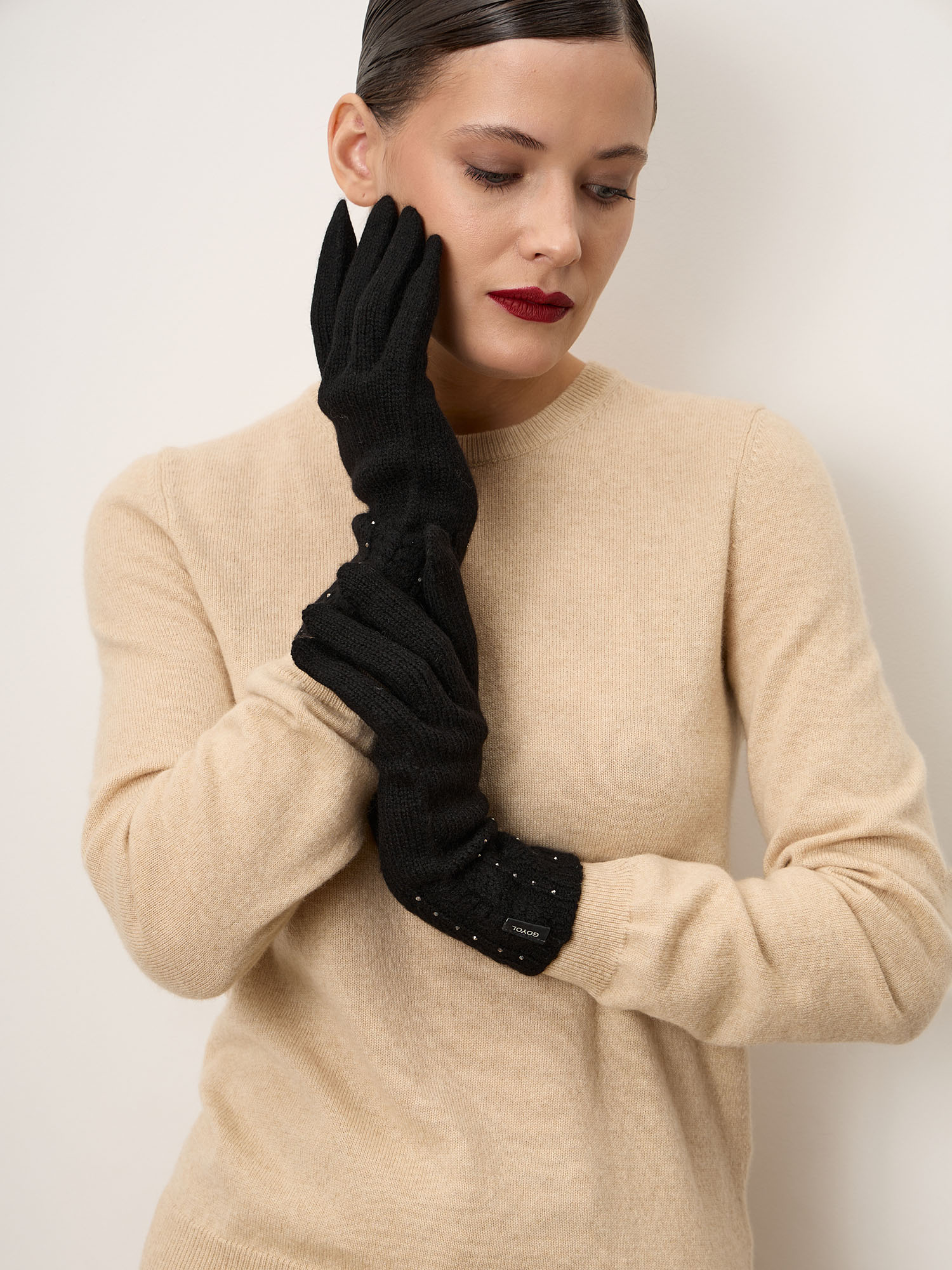 Кашемир отличается высокой износостойкостью при правильном уходе. Перчатки сохраняют форму, мягкость и внешний вид на протяжении длительного времени, а декоративные элементы устойчивы при бережной эксплуатации.