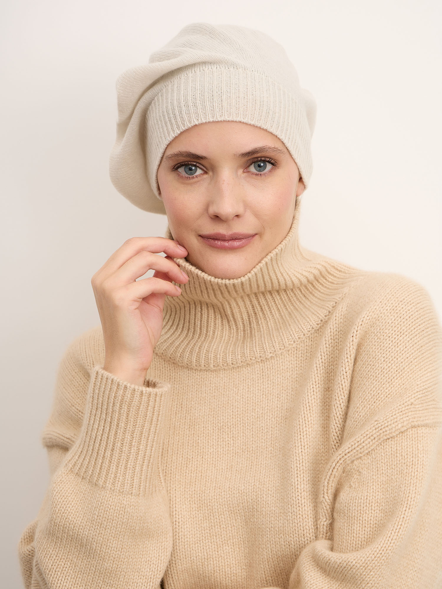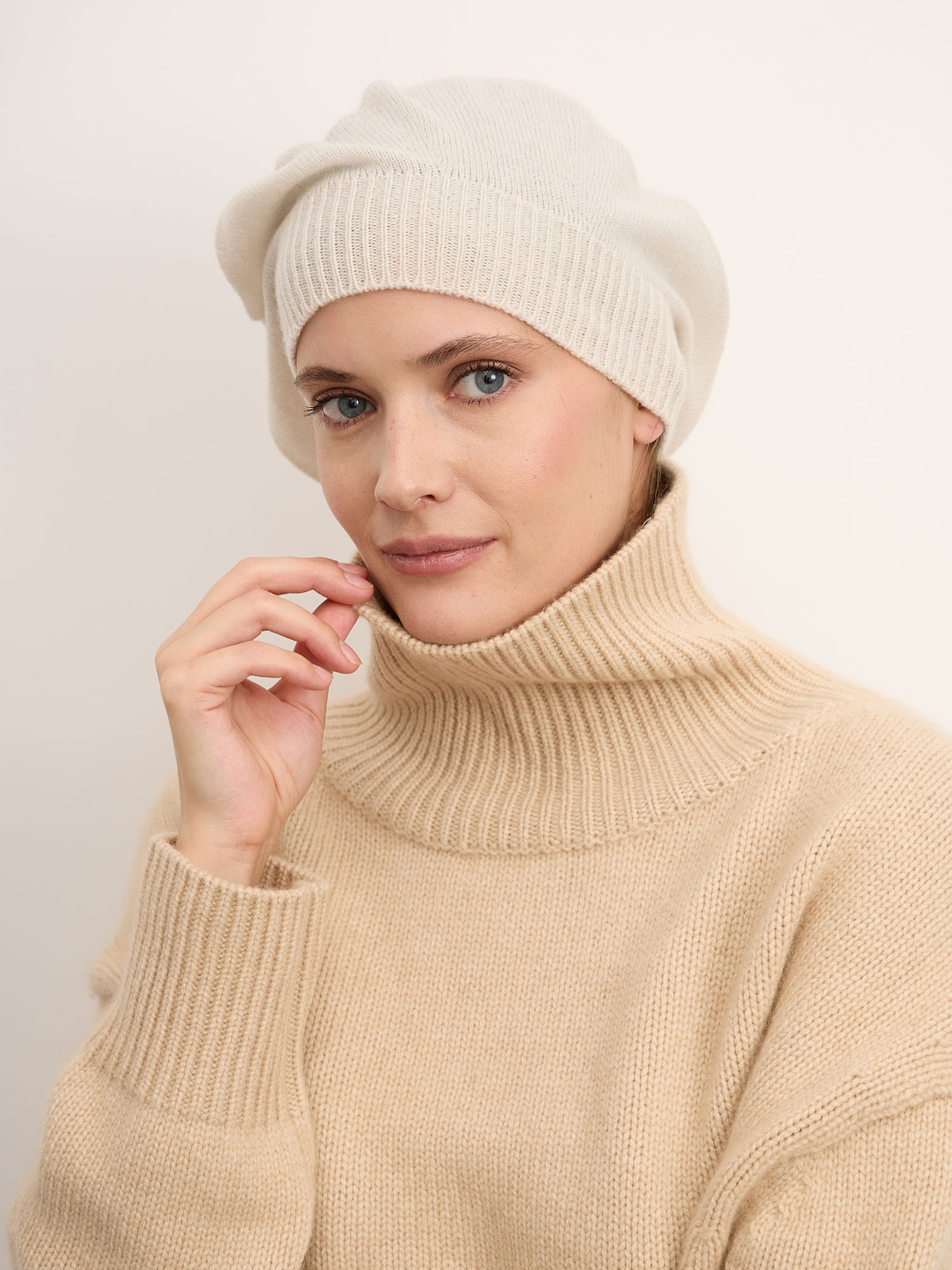 100% натуральный кашемир. Тонкое волокно отличается исключительной мягкостью и высокой терморегуляцией: сохраняет тепло на улице и не вызывает перегрева в помещении. Гипоаллергенный материал подходит для чувствительной кожи и при правильном уходе сохраняет форму и первоначальную текстуру долгие годы.