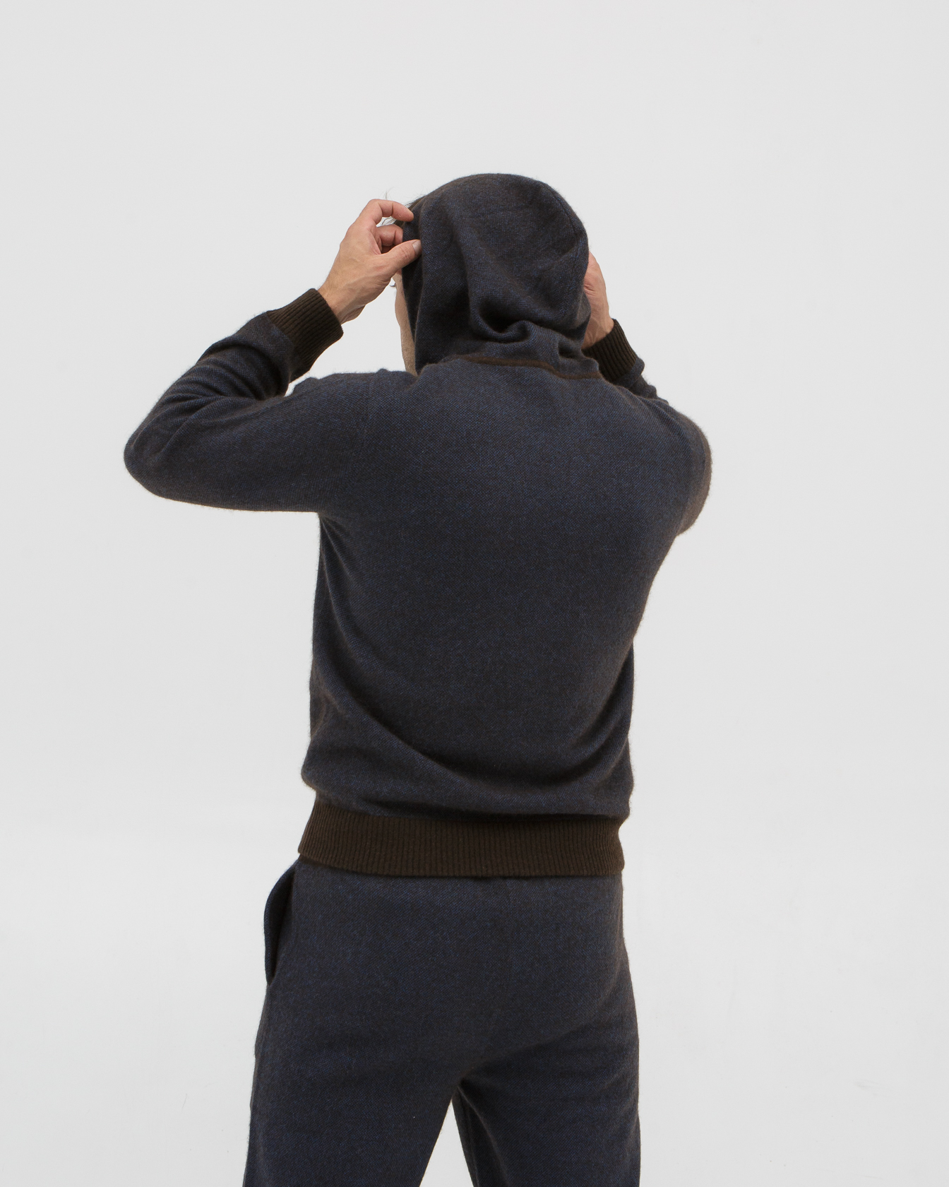 Мужской джемпер с капюшоном из пуха яка и верблюжьей шерсти — функциональная и тёплая модель для повседневного гардероба. Идеален для прохладной погоды и активного образа жизни.