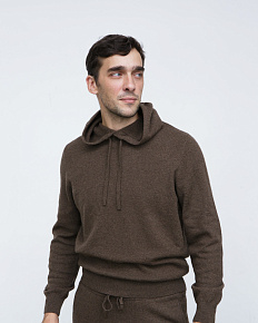Стильный мужской джемпер с капюшоном из 100% натурального пуха яка в благородном коричневом цвете – превосходное сочетание практичности и комфорта. Этот редкий природный материал, добываемый в высокогорных районах Монголии, обладает исключительными свойствами для повседневной носки.