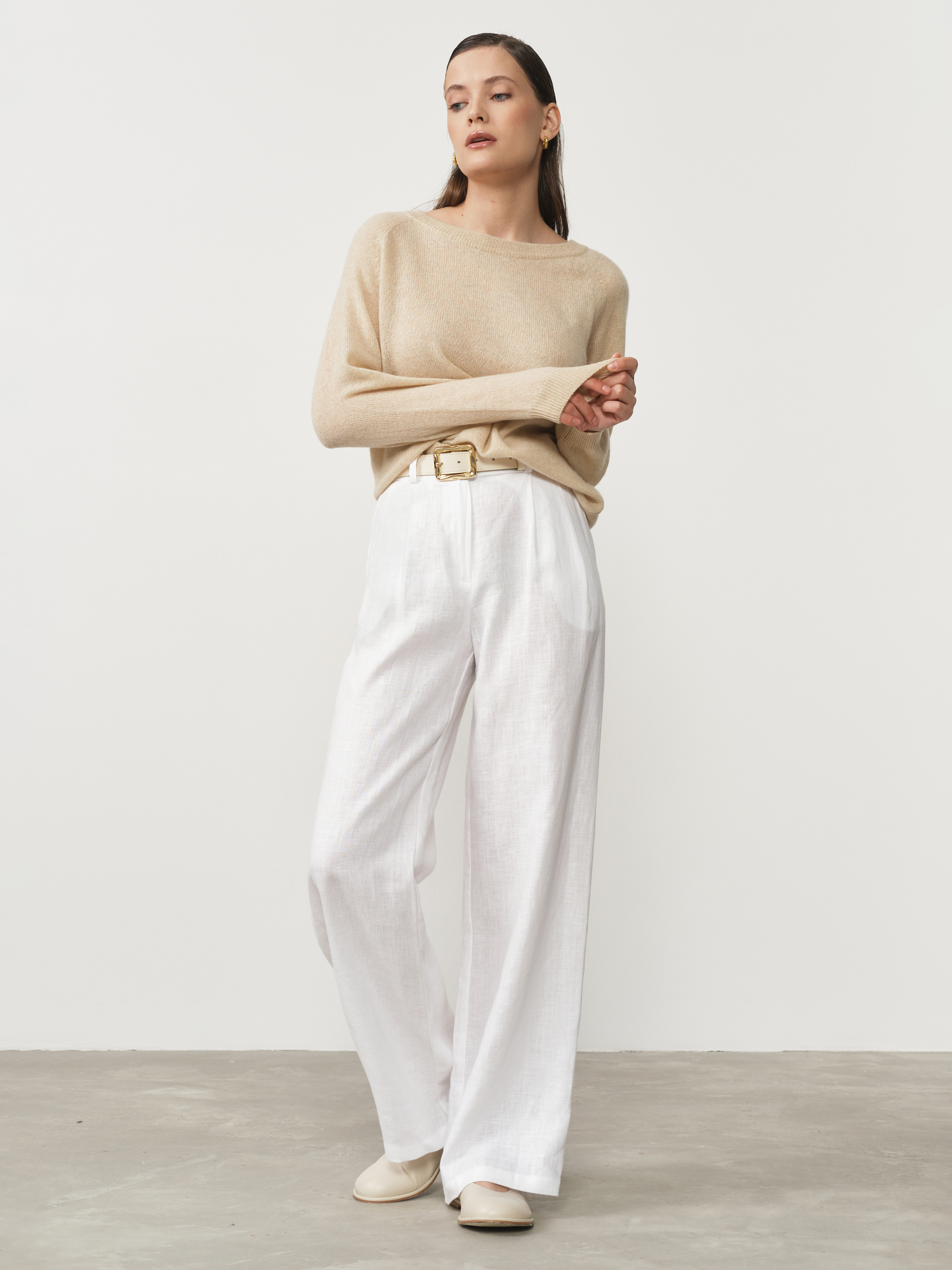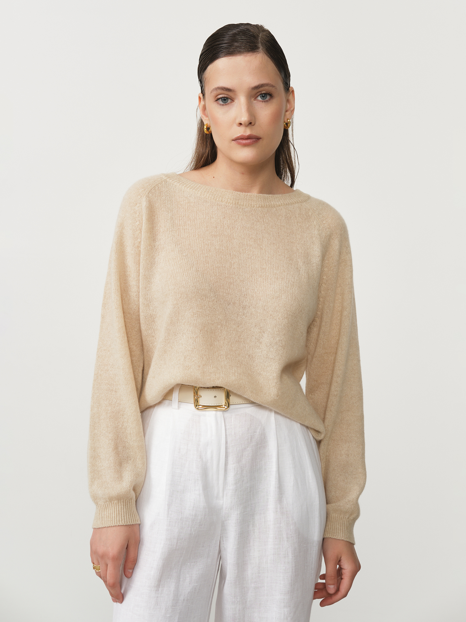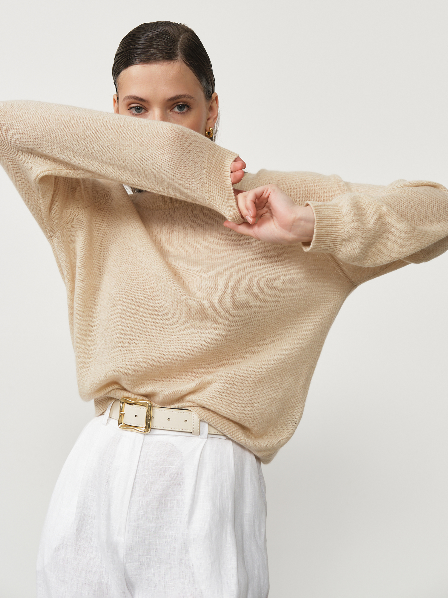 Бежевый — тёплый и универсальный оттенок, который подчёркивает натуральность кашемира и легко комбинируется с различными цветами одежды.