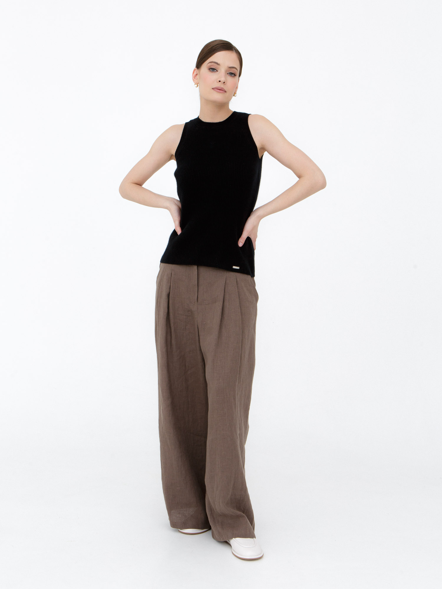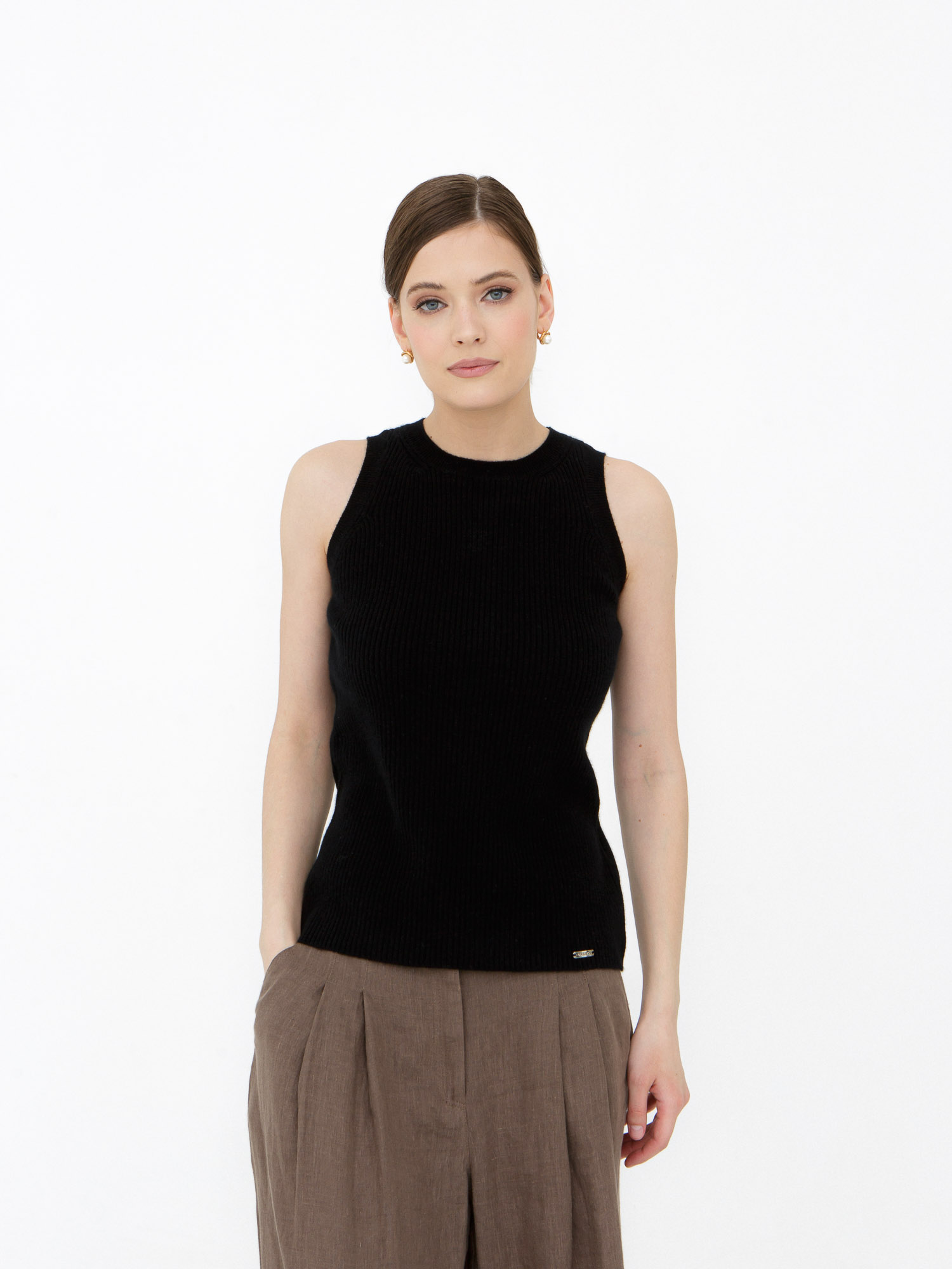 Кашемировый джемпер без рукавов — элегантная и лаконичная модель, которая легко вписывается в современный базовый гардероб. Минималистичный силуэт и мягкая текстура создают утончённый образ, подходящий как для повседневных, так и для более собранных городских образов. Лёгкий и приятный к телу трикотаж обеспечивает комфорт в течение всего дня.