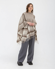 Формат пончо с широким кроем, декоративная клетка и аккуратная бахрома по краю создают эффектный и современный образ.