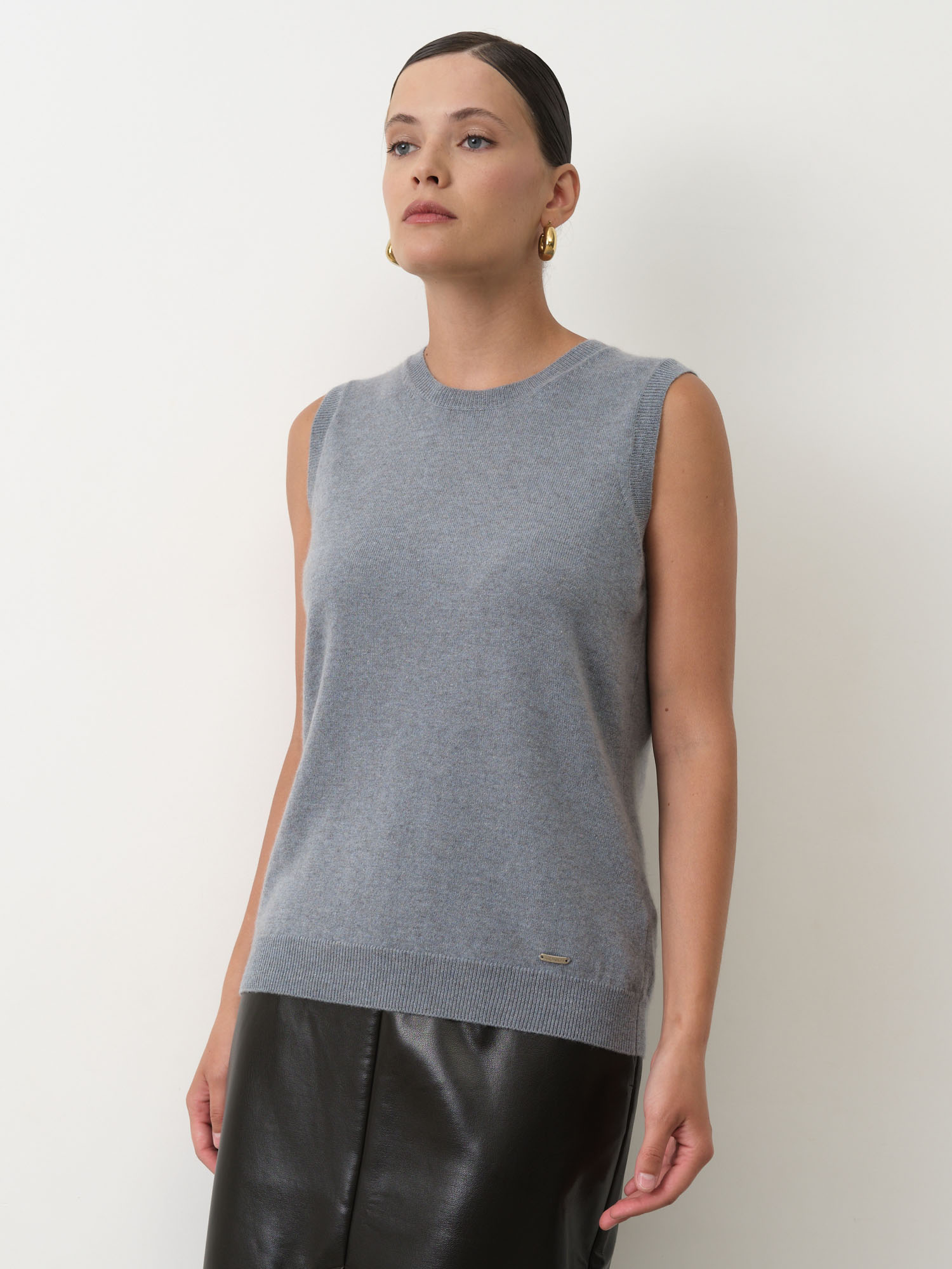 Модель выполнена без рукавов с аккуратной круглой горловиной и гладкой вязкой. Минималистичный крой подчёркивает благородную текстуру кашемира и создаёт современный универсальный силуэт. Нижний край изделия оформлен эластичной вязкой, что помогает сохранять форму.